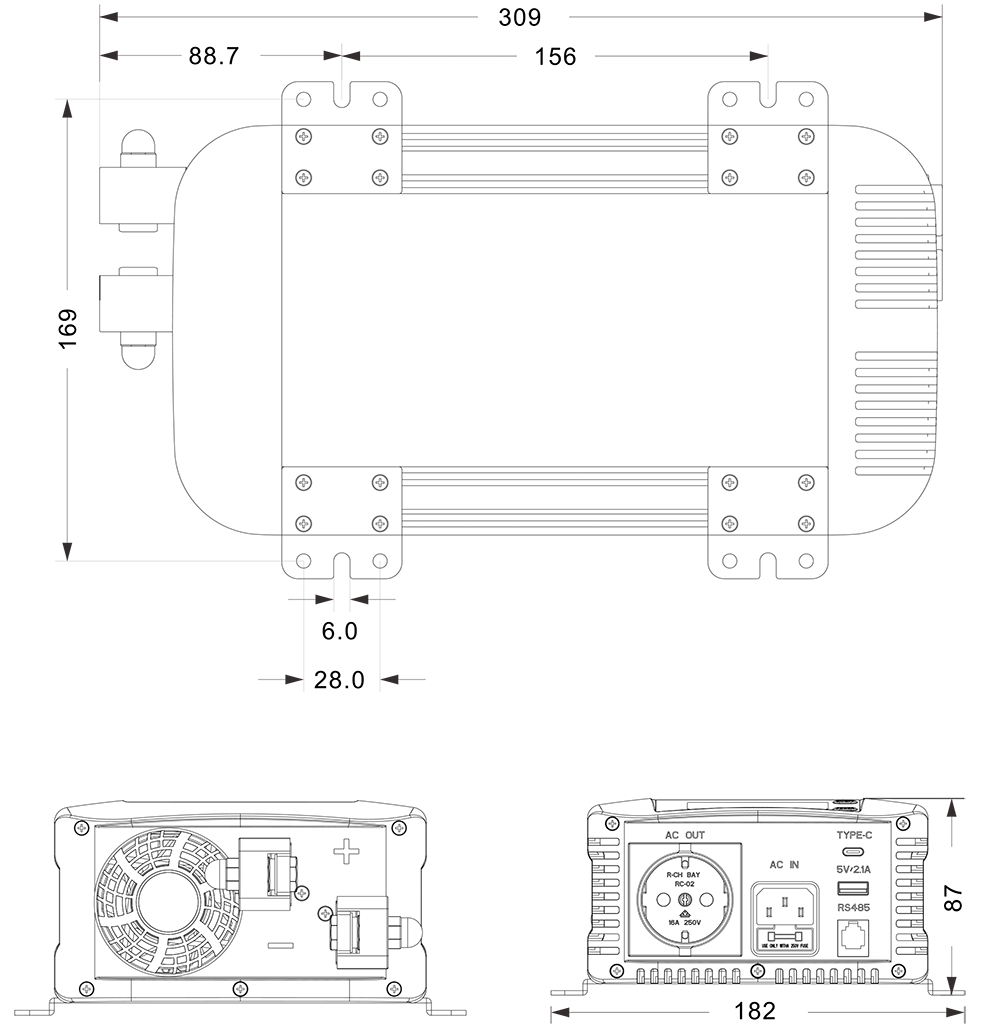 Líníochtaí Meicniúla:(309x182x87 mm)